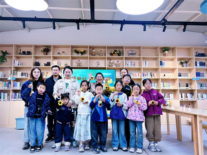 随后,高老师向孩子们示范制作步骤,从小巧的花瓣到美丽的花苞,每一步都仔细讲解示范,孩子们认真地聆听,迫不及待地跃跃欲试。拿到扭扭棒材料后,孩子们就动手制作起来,扭动、折叠,每一次的扭动,都仿佛在编织着一个个美好的愿望;每一次的折叠,都似乎在描绘着一幅幅动人的画面。每位孩子都沉浸在创作的乐趣中,很快,一个个创意十足、精致玲珑的向日葵挂件呈现在眼前。孩子们高高举起作品,脸上满是自豪;家长们也纷纷拿出手机,记录下这珍贵瞬间。